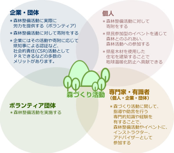 しまね森林活動サポートセンターでは、以下のような活動を支援します。