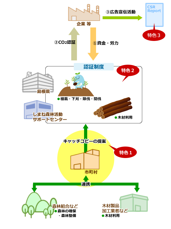企業等が、市町村等と協定を締結し、自ら実施した森林整備に対して認証します。