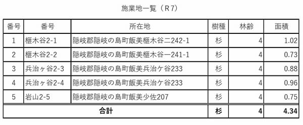 | 森林の位置 | 隠岐郡隠岐の島町飯美榧木谷ニ242-1 他4 |