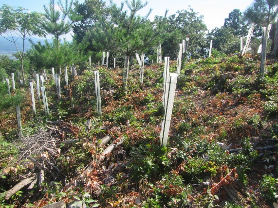 今年度も出雲市大社町遥堪地内の森林において植栽及び下刈3.25haの整備を行っていただき、地球温暖化防止のため、17.50t-CO2/年の二酸化炭素吸収にご協力いただきました。