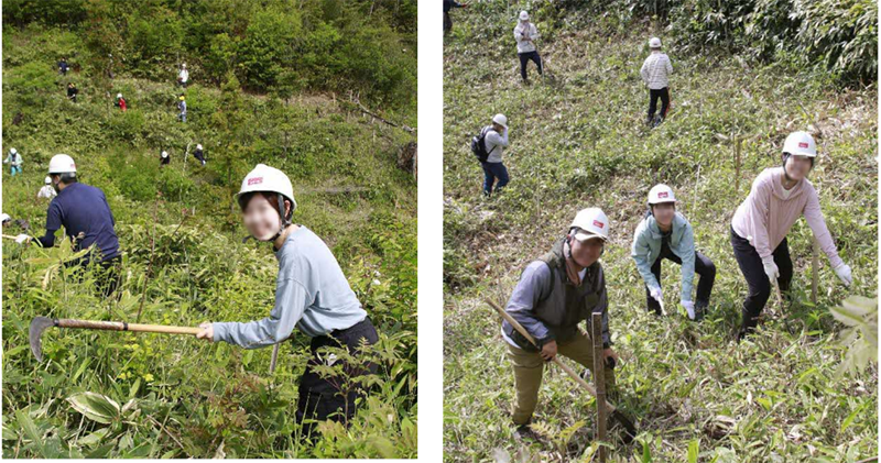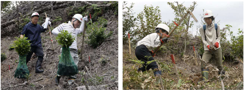 株式会山陰合同銀行では、企業の社会的貢献活動として森林保全活動に取り組まれています。今年度は、松江市八雲町地内、大田市三瓶町地内及び浜田市旭町地内の3か所の山林において、植栽、下刈の森林整備を6.03ha実施され、地球温暖化防止のために20.98t-CO2/年の二酸化炭素吸収にご協力いただきました。