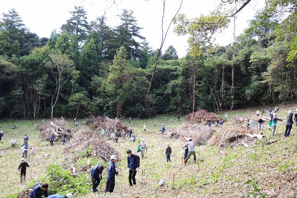 今年度は、松江市西川津町地内の森林0.30haにヤマザクラを植栽され、1.04t-CO2/年の二酸化炭素吸収にご協力いただきました。