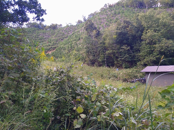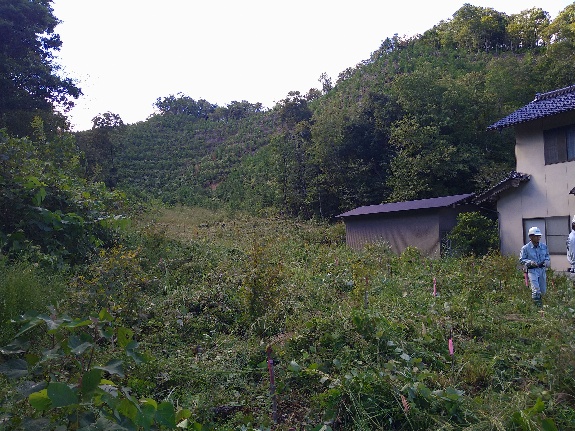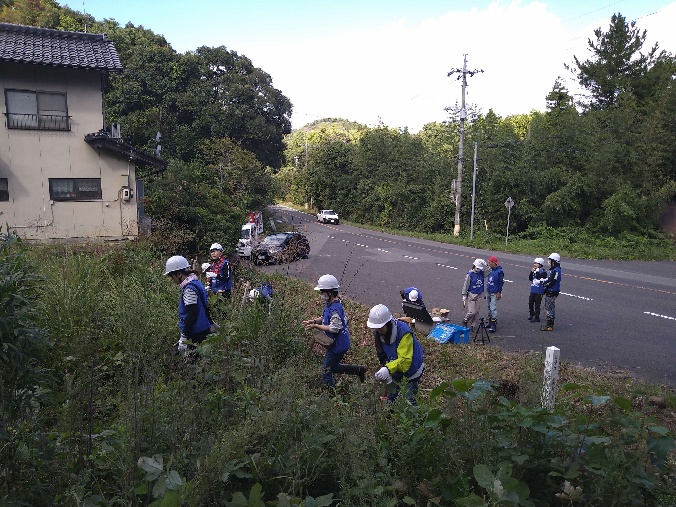 5回目となる今年度は、令和3年度に松江市東出雲町地内で植栽した山林0.10haのうち0.05haの下刈り施業を行っていただきました。