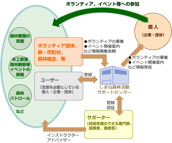 サポーターは、サポーター申請により、森林活動サポートセンターを通じて島根県が認定しています。