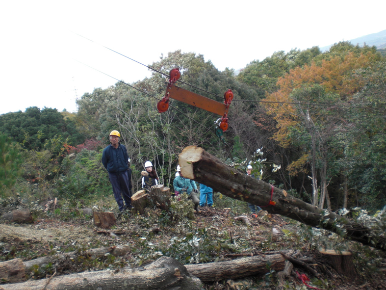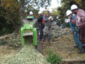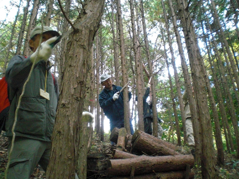 午前中は、人工林の「枝打ち、間伐の必要性」について行い、 午後からは、島根県森林整備課より「ナラ枯れのメカニズム」について講演を、 里山の「育てる」、「伐採」、「利用」については、近郊で活躍されている森林関係のNPO法人3団体よりそれぞれ説明、ご指導いただいた。
