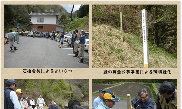 「龍頭が滝」に気持ちよく来ていただくため、地元による歩道周辺の整備が毎年行われていましたが、より多くの方々に来場願いたいと、「緑の募金事業」による花木の植栽が計画され、大苗のためサポーターの指導を受け、地元協議会による植栽が行われた。