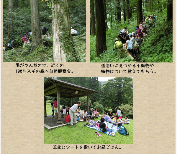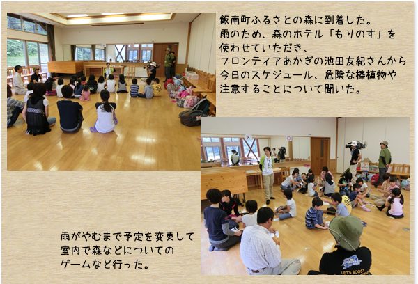 バスの中では写真や木の実を使って木の特徴や森に住んでいる小動物などを学んだ。