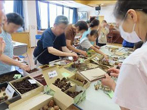 子どもたちは「葉っぱや木の枝を使って作品作りをしました。いろんな作品を作れて嬉しかったです。」「川で遊べなくて残念だったけど、森の中でいろんな葉っぱを見られて楽しかったです。」「ヒグラシやカブトムシなどいろんな昆虫を見ました。初めて見るものが多かったのでとても嬉しかった。」などと、楽しみにしていた川遊びはできなかったけど、森の中でいろんな体験をたくさんしてとても楽しく過ごした様子を嬉しそうに話してくれました。