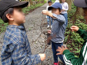 普段は入ることのない森の中や川の中を遊びまわる子どもたちの顔は、いつもは見ることができないキラキラした表情でした。