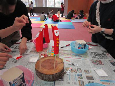 参加者からは、「製作の前に準備された木の匂いを嗅いでみました。木の香りを嗅ぐことは初めての体験で新鮮でした。」「落ちている木を利用して、いろいろなアレンジをすることで作品になることが分かりました。また子どもと一緒にやってみようと思いました。」などと、貴重な体験をした感想を楽しそうに話してくれました。