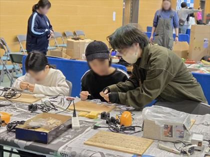 子どもたちからは、「熱いペンを初めて使った。教えてもらいながら、力の入れ方に気を付けながら絵を描いた」「描きたいものは描けなかったけど、おじいちゃんやおばあちゃんに手伝ってもらって違うものを描いた。できて楽しかった」などと、初めて使う電熱ペンに苦労しながら、とても楽しく工作ができた様子を嬉しそうに話してくれました。